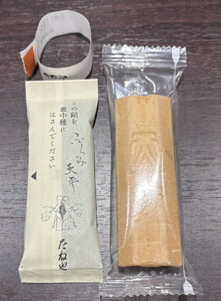 「ふくみ天平」は、最中種(もなかの皮)と餡が別々に包装されていて、ひとまとめになっています(左画像)。